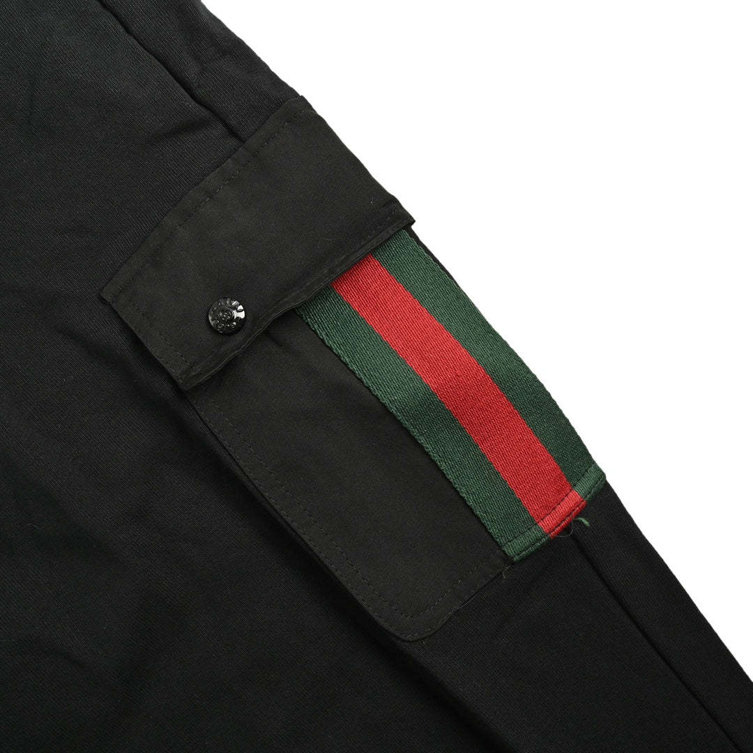 Cargo trousers with side webbing pockets