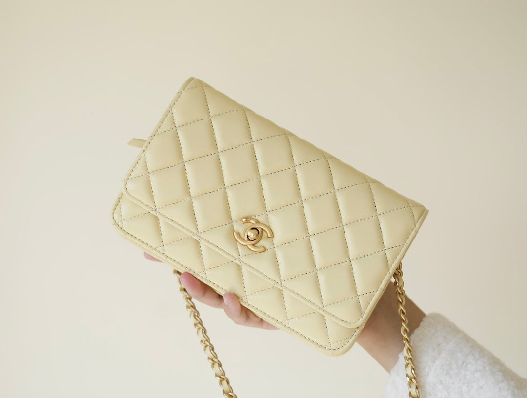 Chain wallet lambskin chicken yellow