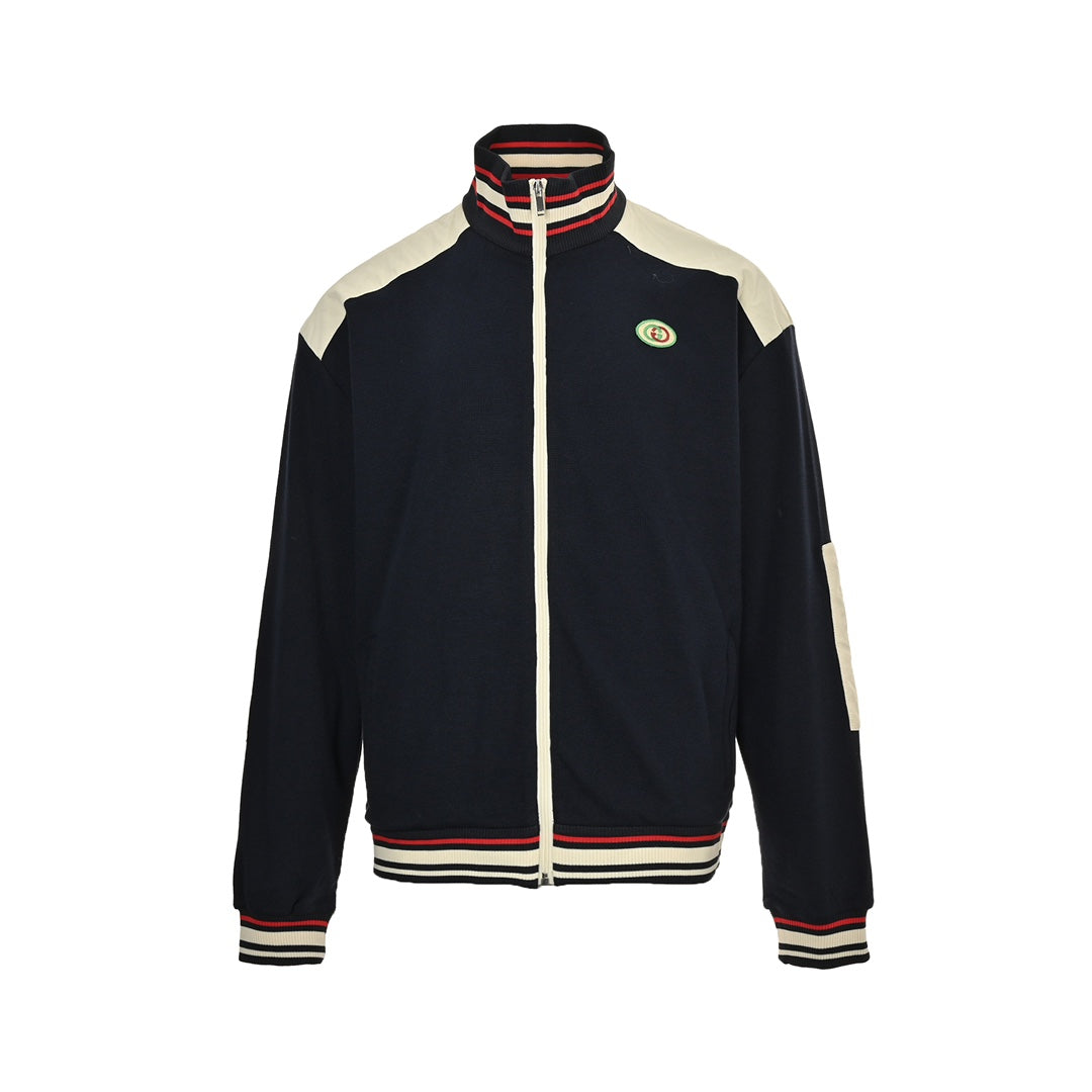 embroidered logo panel zip jacket