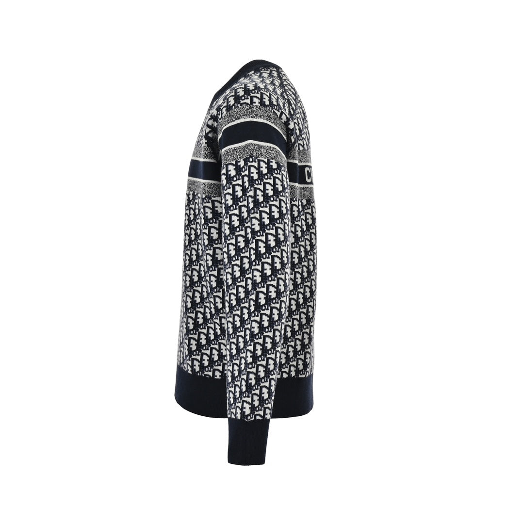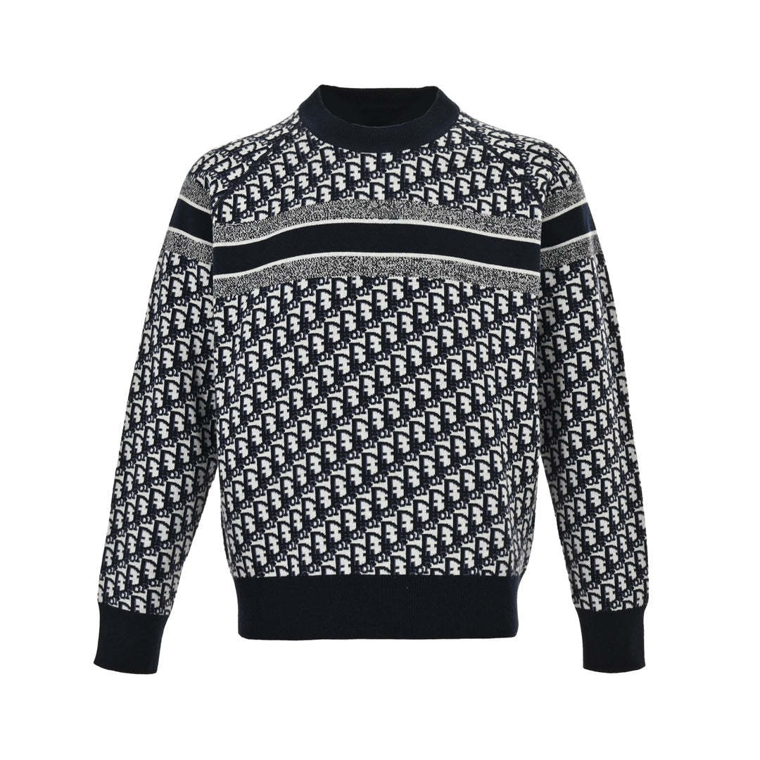 Presbyopia jacquard knitted cashmere reversible crew neck