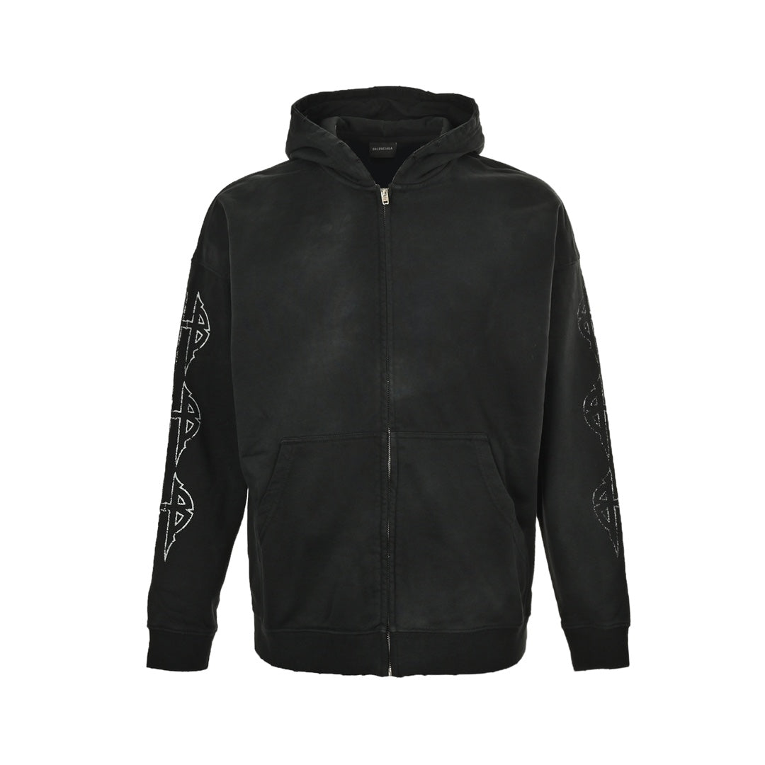 reverse iron zip hooded jacket